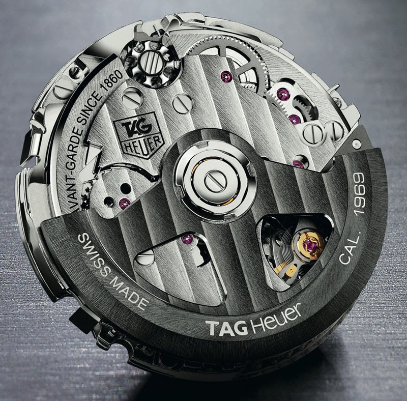 Il Carrera 1969, il primo modello a ospitare il nuovo calibro 1969 di manifattura, monta un movimento con modulo cronografico automatico integrato con innesto verticale.