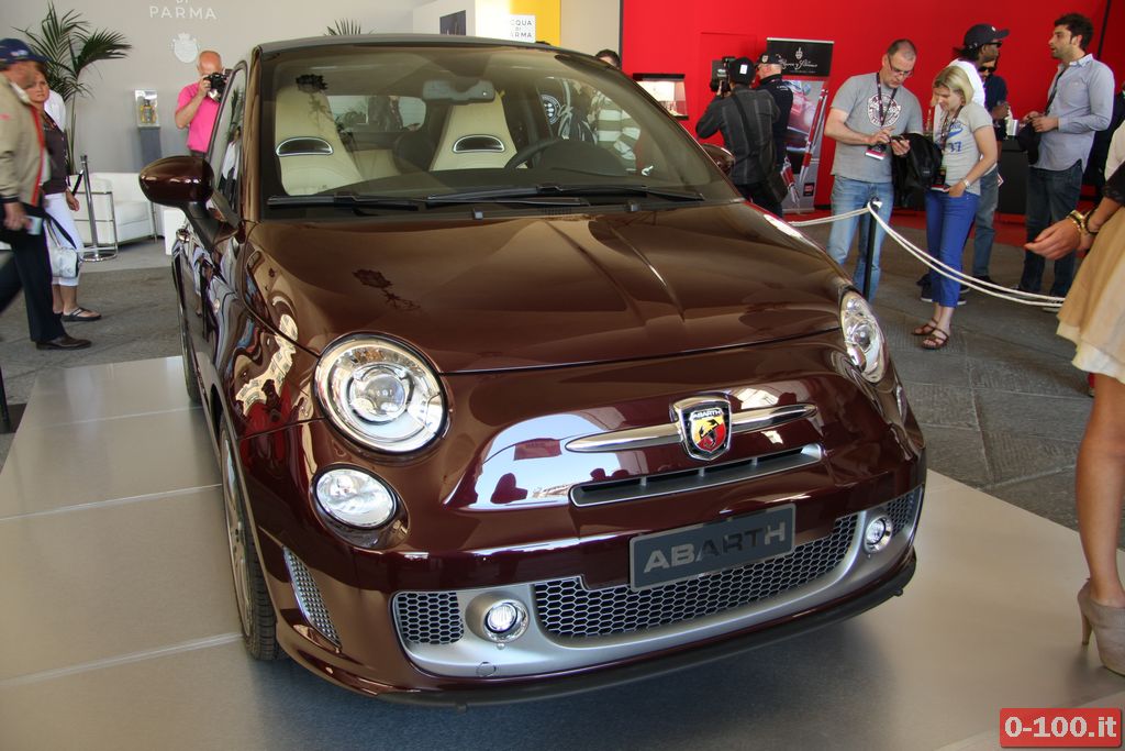 Verniciata in colore Bordeaux Pontevecchio proveniente dal catalogo Maserati, è basata sulla Abarth 500C. Il motore 4 cilindri 1.4 T-Jet eroga 180 Cv a 5.500 giri e 250 Nm a 3.000 giri in abbinamento a un allestimento specifico per questo modello: cerchi in lega da 17″ Neptune, impianto freni Brembo potenziato con dischi di diametro di 305 mm all’anteriore con pinze grigie (anteriori a 4 pompanti), assetto Koni, impianto di scarico Dual Mode con sound studiato per esaltarsi oltre i 3.000 giri. Infine è equipaggiata con cambio meccanico elettroattuato Abarth Competizione a 5 marce + RM.
