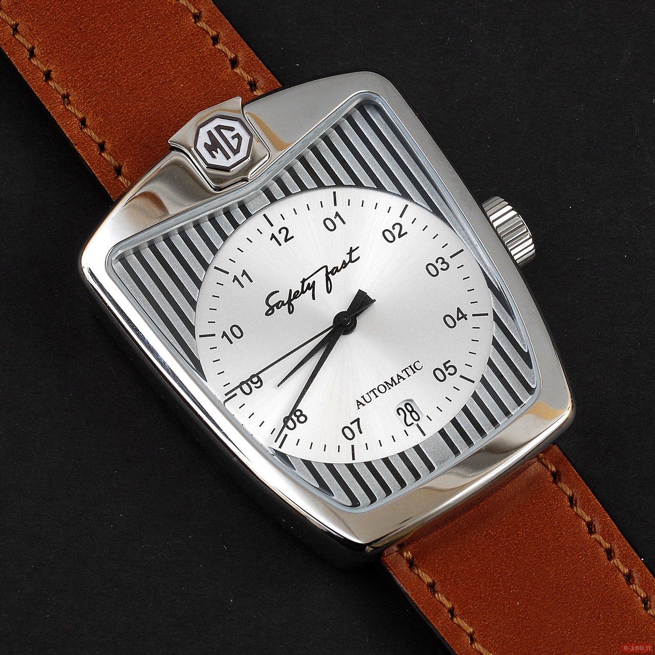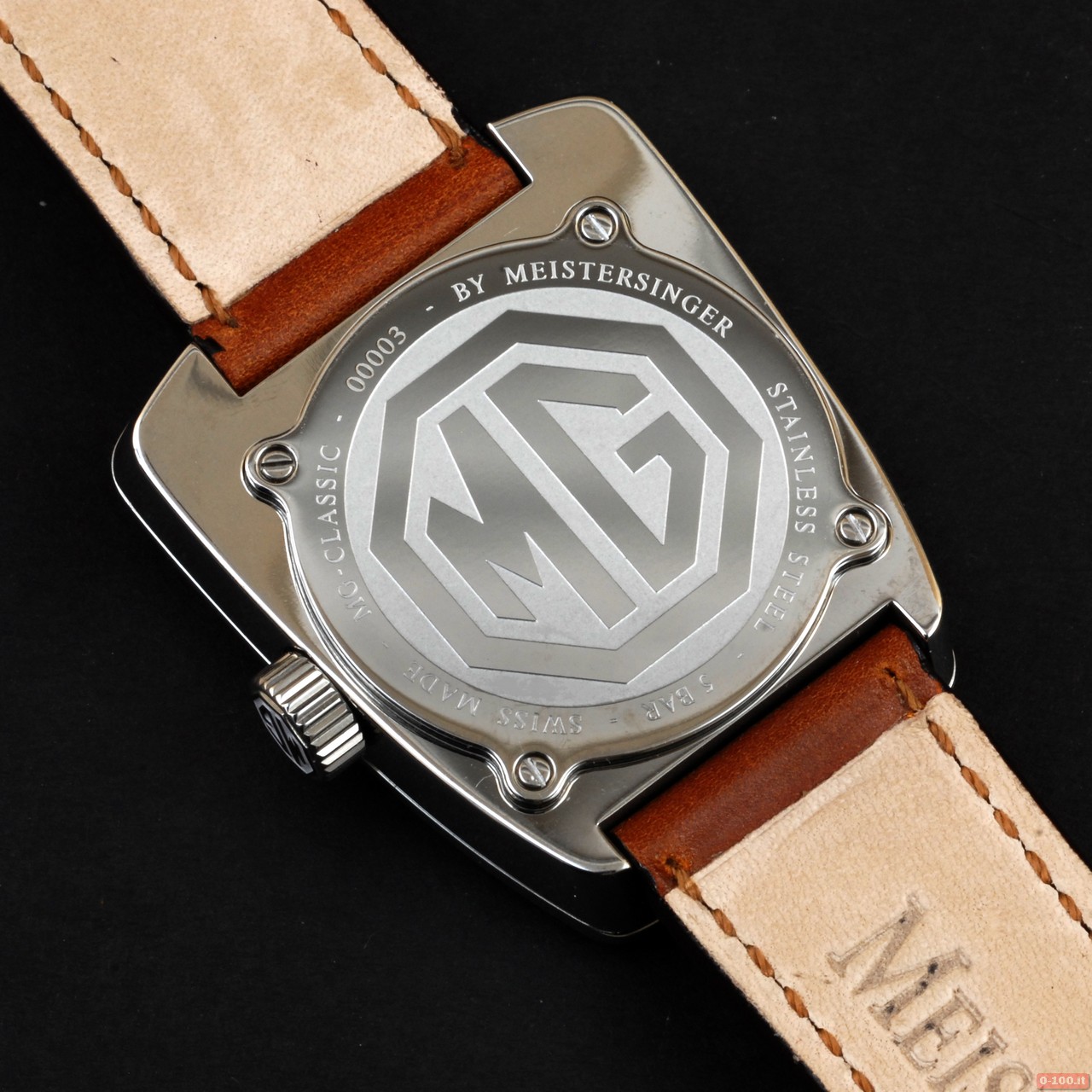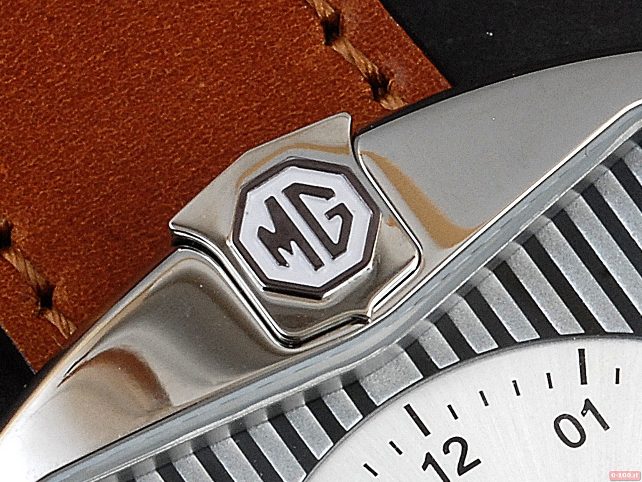 Il logo MG viene riprodotto sia sulla corona, sia sul fondello sia a ore 12.