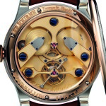 E’ equipaggiato con il calibro F.P.Journe 1412, movimento meccanico a carica manuale con tourbillon, necessita di 29 giri di corona per raggiungere la massima carica, oscilla a 21.600 alternanze l’ora. Due bariletti paralleli distribuiscono l’energia al rotore collocato lungo l’asse dell’orologio. Questo imprime la forza necessaria alla gabbia del tourbillon, che compie una rotazione completa in 60 secondi attorno al proprio asse.