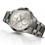 Impermeabile fino a -100 metri, questo cronografo è completato con un bracciale a singole maglie color grigio metallizzato lucido anch’esso in ceramica high-tech; un materiale che, oltre a essere più duro e leggero dell’acciaio, è ipoallergenico e resistente alla corrosione e ai graffi.