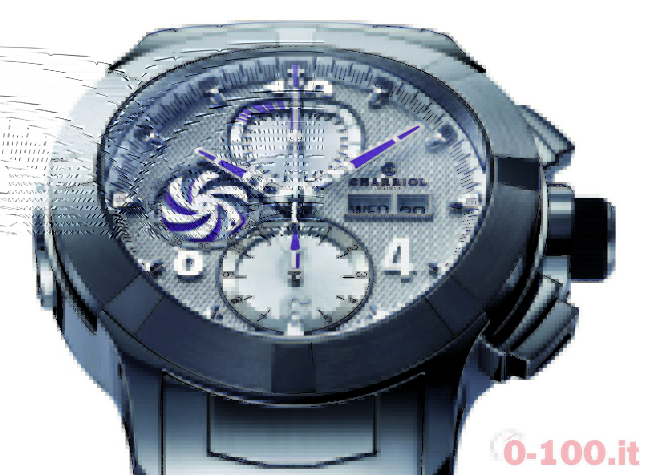Alle ore 9, il contatore dei piccoli secondi con design a ruota di turbina desidera evocare le gomme di una supercar.