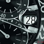 Il quadrante, anch’esso nero, è protetto da vetro zaffiro antiriflesso ambo i lati. I 3 contatori cronografici sono così distribuiti: secondi alle 3, 12 ore al 6 e 30 minuti alle 9.