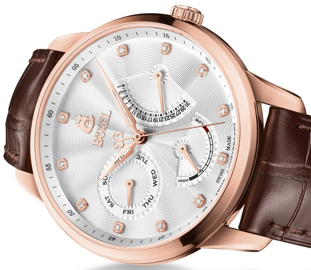 10 OROLOGI PER I PRIMI 160 ANNI. IL SALONE DI BASILEA 2016 SARA’ L’OCCASIONE PER ERNEST BOREL DI PRESENTARE LA SUA LINEA CELEBRATIVA CHE PROPONE, TRA LE ALTRE COSE, UN SEGNATEMPO, REALIZZATO IN UNA SERIE LIMITATA DI 888 PEZZI, CON INDICAZIONE DEL GIORNO DELLA SETTIMANA, DELLA DATA E DELLA RISERVA DI CARICA.