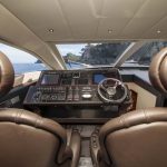 On board there are a double owner’s suite, three VIP cabins and two crew cabins. The use of lacquered ebony with chromesteel inserts, natural teak and carpeting in silk and cashmere create evidence chromatic contrasts and fascinating atmosphere that helps to emphasize the spaciousness of the interiors.