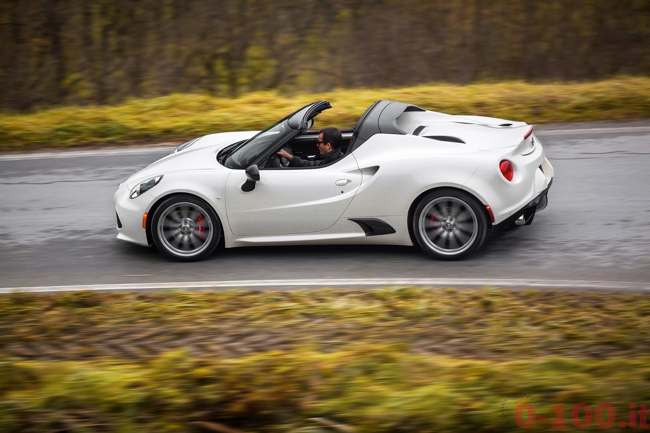 Alfa Romeo dichiara che la 4C Spider percorre lo 0-60 miglia (0-96 km/h) in 4″1 e tocca 258 km/h.