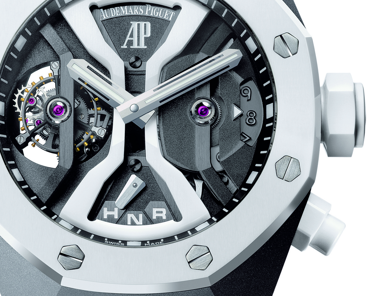Questo luminoso e possente modello andrà ad aggiungersi alla serie Audemars Piguet Concept; al cronografo Royal Oak Carbon Concept Tourbillon del 2008, il primo segnatempo ultraleggero con cassa e platina di carbonio forgiato e all’Royal Oak Concept GMT Tourbillon del 2011 con cassa in titanio, lunetta ottagonale, pulsanti e corona in ceramica nera.