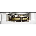 Il quadrante bianco satinato con finitura sunburst vede il contatore dei 30 minuti crono alle 3, dei secondi continui alle 6 e delle 24 ore alle 9. Da notare i contatori che non sono “scavati” come solitamente accade, ma sono sul medesimo livello del display.