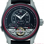 Questo segnatempo dallo stile metropolitano è sia cronografo monopulsante con due contatori semi-circolari (secondi alle 8 e minuti alle 4) sia tourbillon (ore 6).