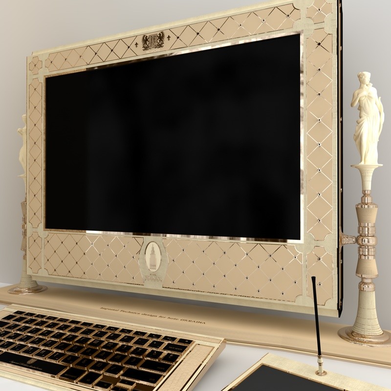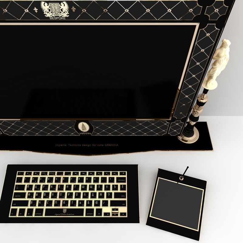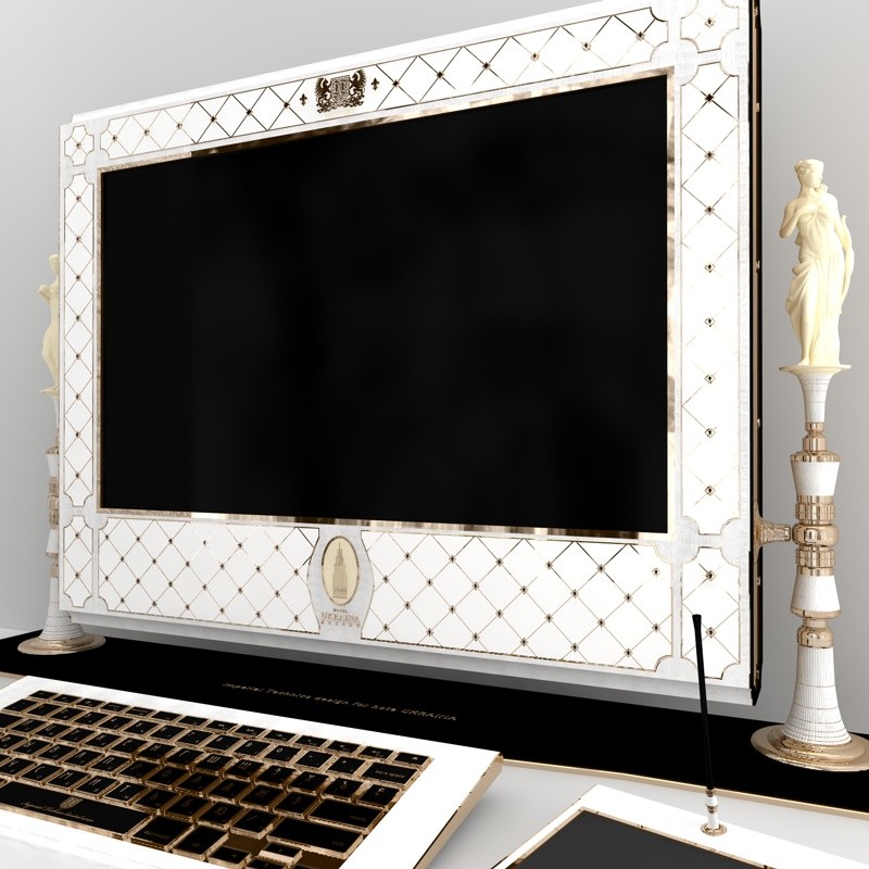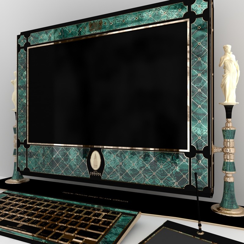 Quest’ultimo opulento iMac ha un desktop da 27 pollici personalizzabile a gusto del cliente e può essere realizzato in pietra, come la malachite, giada, onice se non addirittura in oro e avorio.