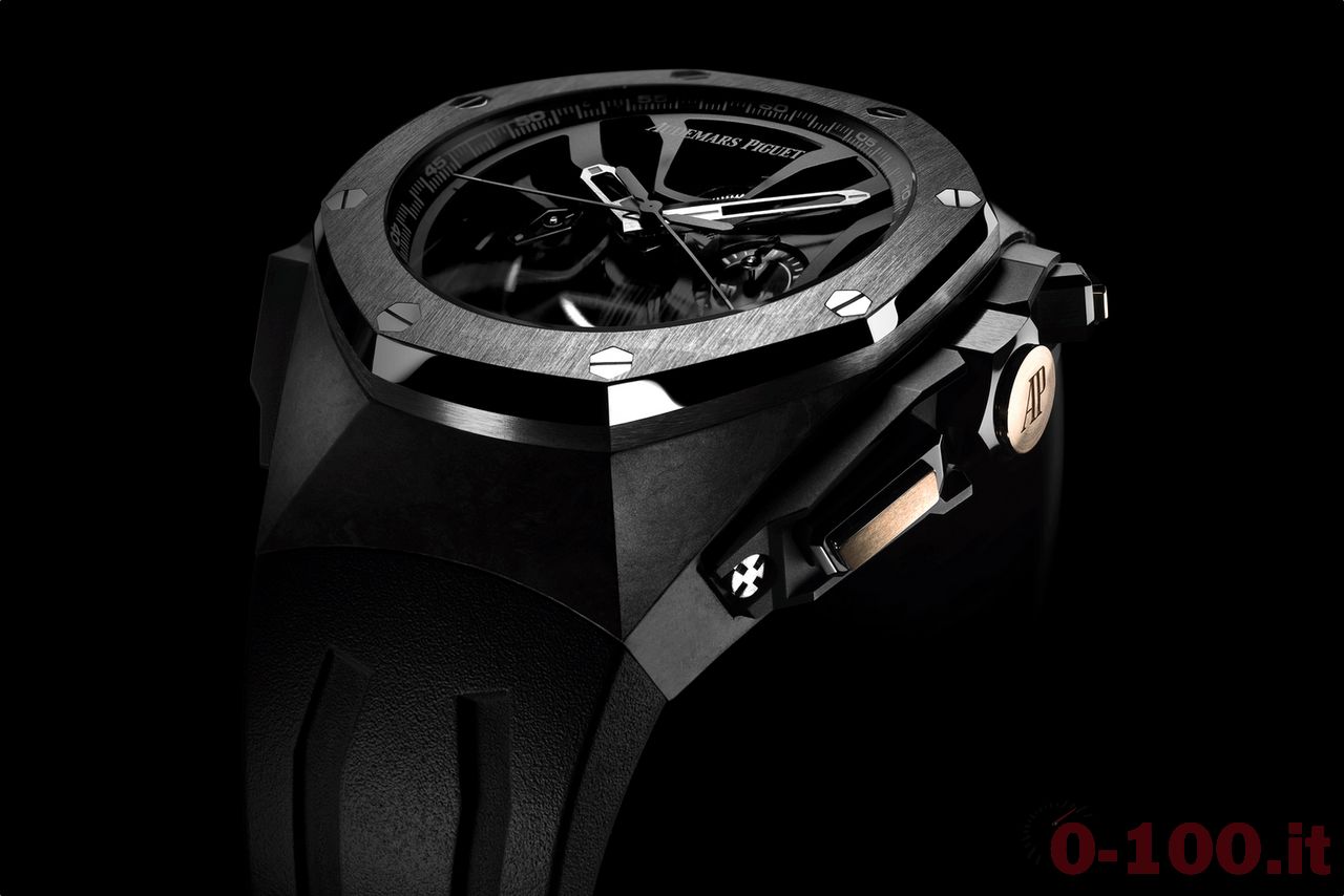 La referenza nr. 26221FT.OO.D002CA.01, con due indici angolari entrambi dotati di una memoria indipendente, presenta una cassa in titanio forgiato dal diametro di 44 mm al cui interno è custodito il calibro di manifattura Audemars Piguet 2923 (413 componenti). Movimento meccanico a carica manuale con un’autonomia di marcia a carica completa di minimo 80 ore, oscilla alla frequenza di 28.800 alternanze l’ora e offre le funzioni di cronografo laptimer con doppie lancette centrali dei secondi, flyback, contatore 30 minuti alle 3, piccoli secondi alle 9, ore e minuti.