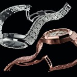 Impermeabile fino a una profondità massima di 50 metri, questo segnatempo femminile avvolge il polso con un bracciale in oro rosa o bianco 18kt martellato chiuso con una fibbia pieghevole AP.