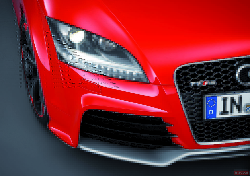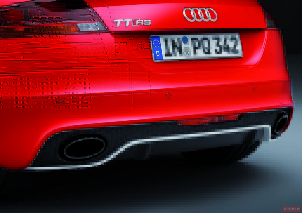 La TT-RS Plus si riconosce per la mascherina anteriore a nido d’ape color antracite, le calotte degli specchi esterni in fibra di carbonio, il pomello con leva del cambio “griffata” con logo “TT-RS Plus”, terminali di scarico ovali in colore nero opaco.