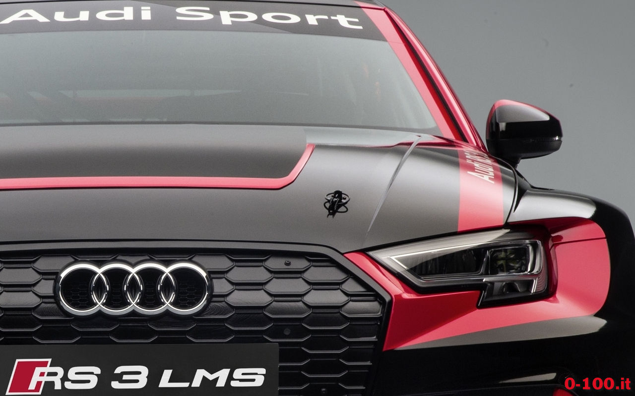 Sotto il cofano l’Audi RS3 LMS accoglie una versione ad hoc del 4 cilindri 2.o TFSI, portato a 330 Cv e accoppiato a cambio meccanico sequenziale sportivo a 6 marce e trazione anteriore. Il peso dichiarato è di appena 1.160 kg.