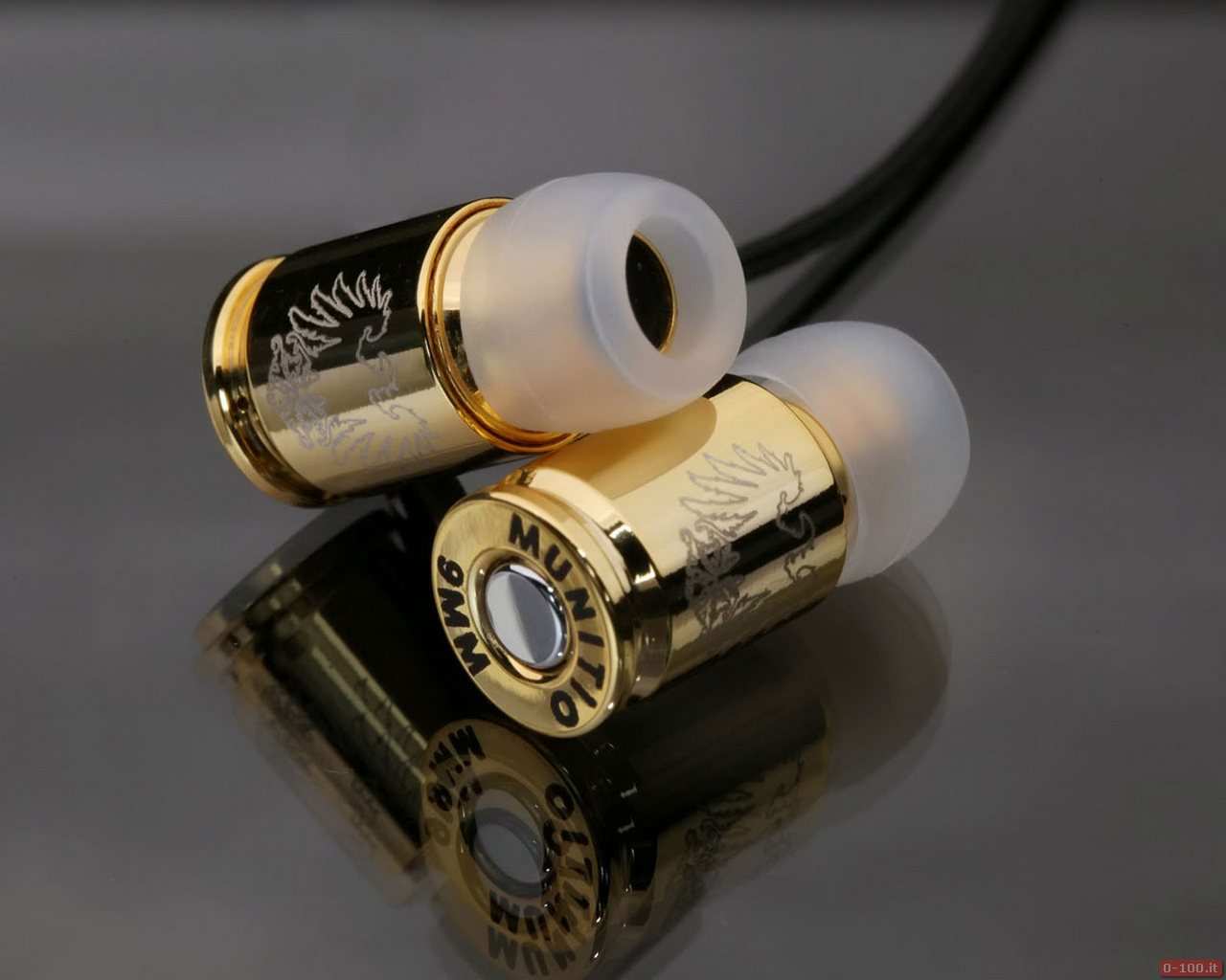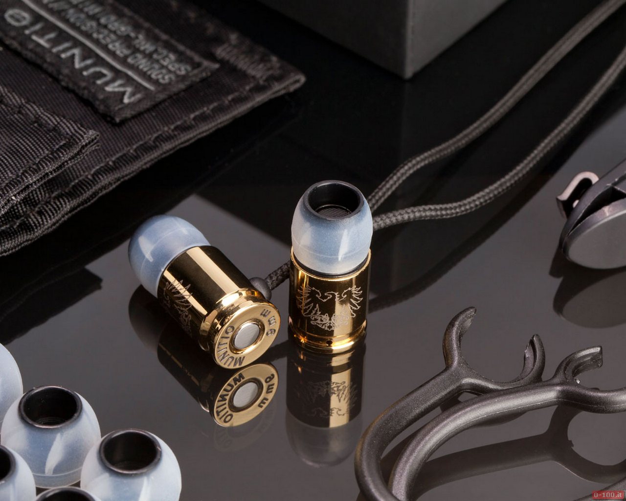 Munitio, società di San Diego, California, ha svelato al CES (Consumer Electronics Show) 2013 a Las Vegas (8-11 gennaio 2013) il suo ultimo gioiellino: gli auricolari Nines GLD Tactical 9mm.
