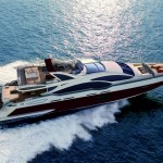 A prua trova posto un salottino e due grandi prendi-sole mentre un flybridge, posizionato tra la parte di tetto apribile sopra il salone e la poppa, crea una ulteriore area di vita all’aperto con posto di pilotaggio, vasca idromassaggio e divano dinette.