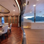 L’interior design, che prevede toni classici e caldi con legno di ciliegio e dettagli in palissandro, è firmato Benetti (curato dall’architetto Mariarosa Remedi in collaborazione con il designer del cliente).