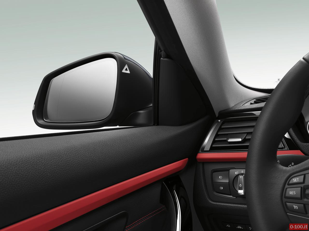 Pacchetto M Sport: (grembiulatura anteriore con grossa presa d’aria, paraurti posteriore con inserto-diffusore, rivestimento dei longheroni laterali sottoporta, cerchi da 18″ o 19″ con design M, sedili sportivi, assetto sportivo, battitacco M, il volante in pelle M e il poggiapiede M.