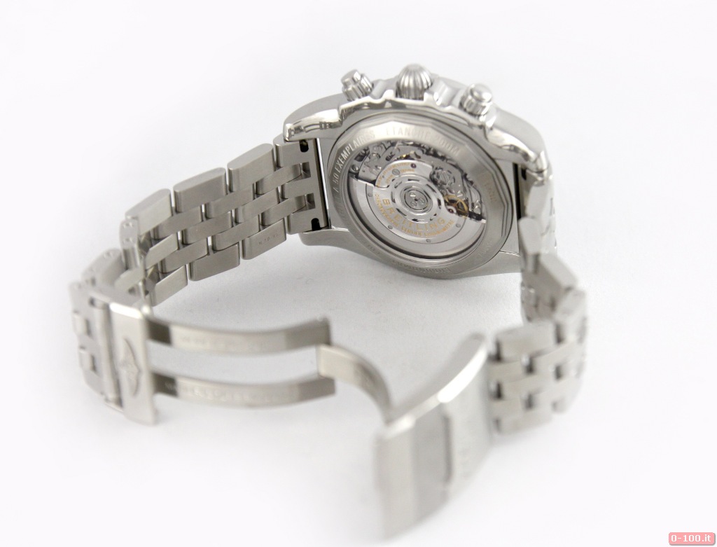 Il Breitling Chronomat 44 è equipaggiato con il calibro di manifattura Bretiling 01, movimento meccanico a carica automatica, 28.800 alternanze l’ora, 47 rubini e più di 70 ore di riserva di carica. Grazie al fondello in vetro zaffiro, è possibile ammirare ogni parte di questo affascinante motore meccanico.