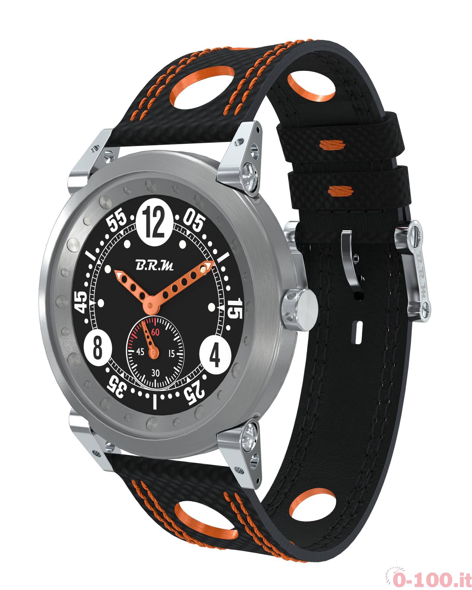 La cassa in acciaio con finitura spazzolata ha la caratteristica corona con fori per aumentare il richiamo con le auto da corsa. Questo si nota anche nella forma delle anse applicate e avvitate. Il quadrante nero, con vetro in zaffiro, ha lancette traforate (si possono avere in colore arancione, giallo, grigio, rosso o blu) che accentuano il richiamo automobilistico. La grafica è creata con grandi cifre che sembrano numeri di gara (soprattutto quelle al 4, all’8 e al 12). Al 6 è presente un piccolo contatore con i secondi. Il Flat-42 è equipaggiato con un movimento meccanico a carica automatica, ETA 7001, che indica ore, minuti e secondi. Il BRM Flat-42 è in vendita a 3.450€ tasse incluse.