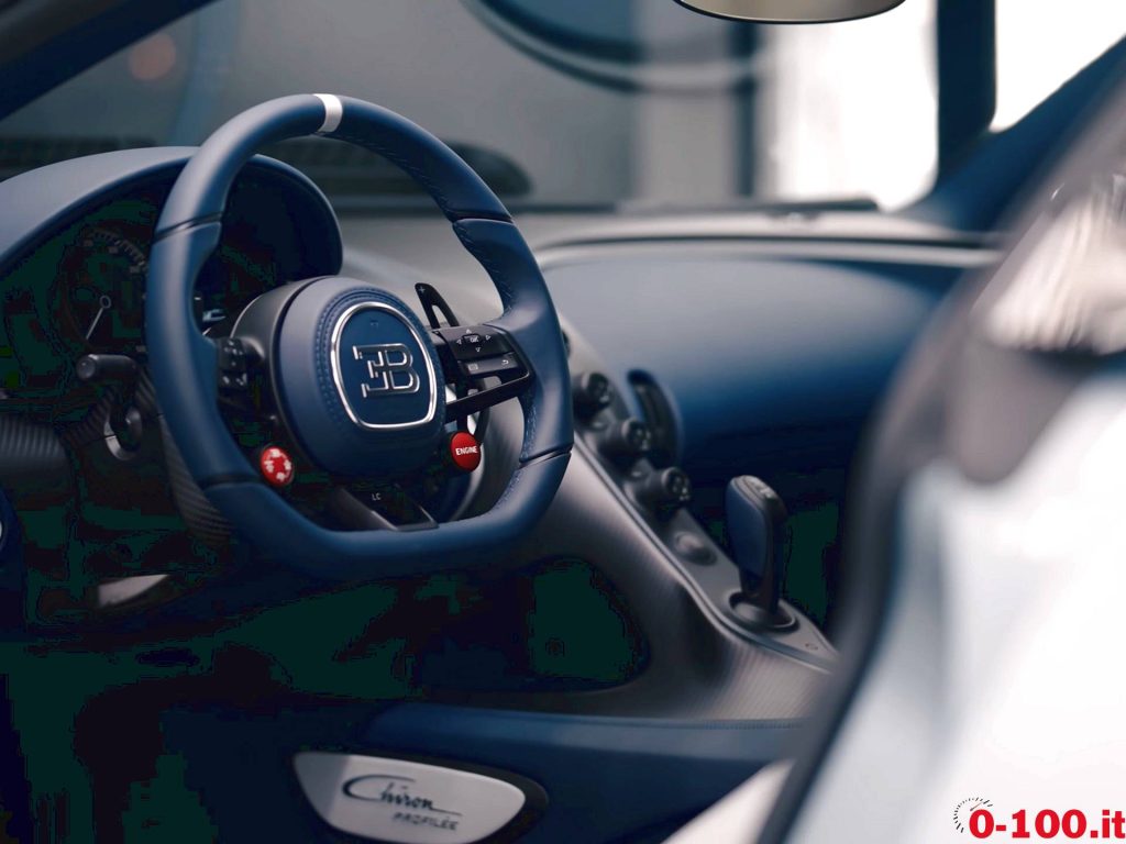 Per la prima volta in un modello Chiron, è stata realizzata una finitura in pelle intrecciata sulla console centrale, intorno al cruscotto, sui pannelli delle porte e sull’inserto della parete posteriore. Questo processo utilizza esattamente 2.665 metri di strisce di pelle, ciascuna applicata meticolosamente a mano.
