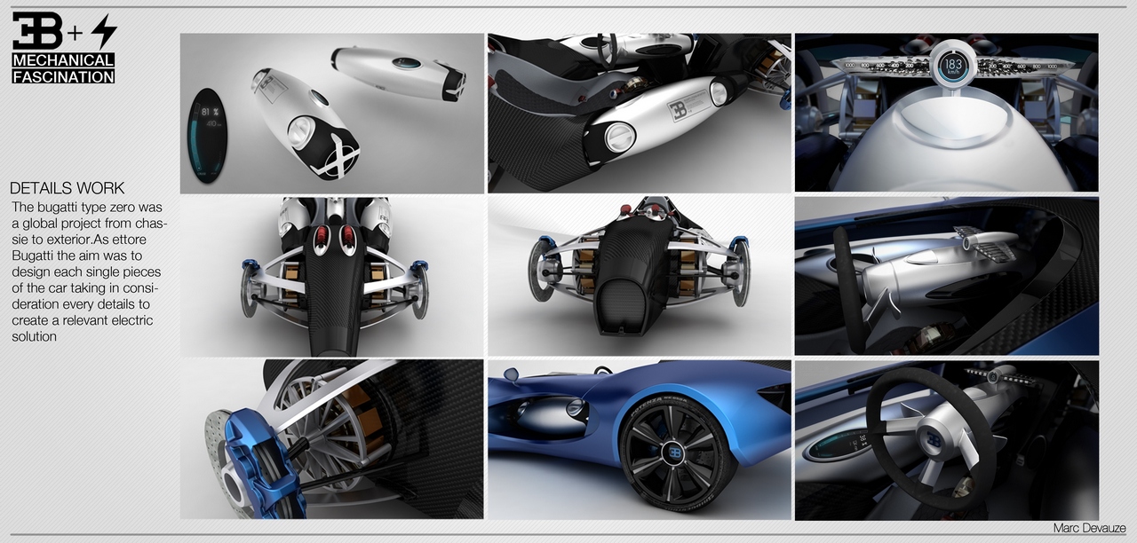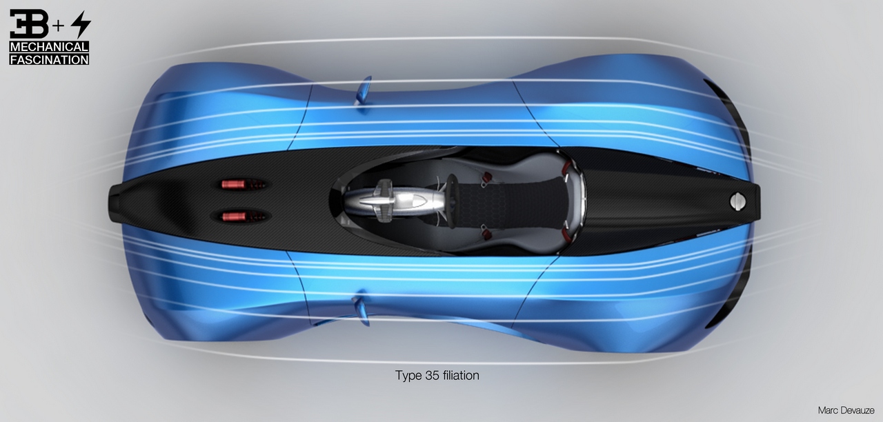 Il designer Marc Devauze ha progettato la Bugatti TypeZero Concept, un’avveniristica monoposto da corsa equipaggiata con 4 motori elettrici (uno per ruota) alimentati da batterie al litio.