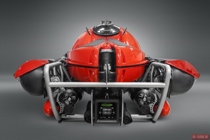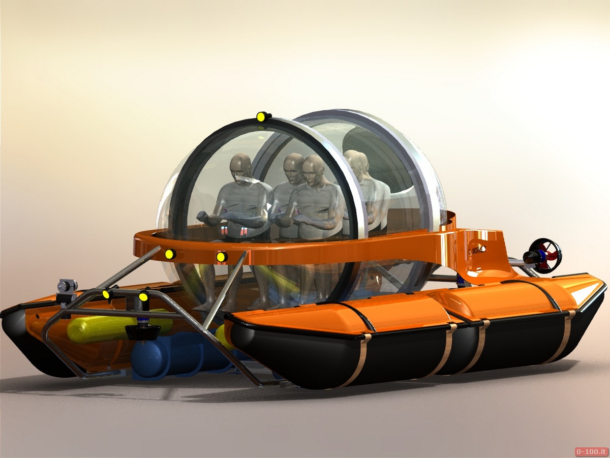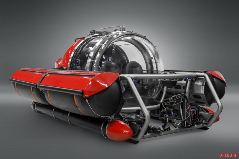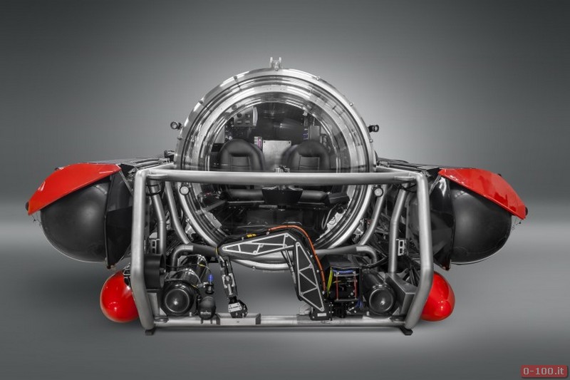 Lo scafo in pressione gli consente di scendere a una profondità massima di – 300 metri e raggiungere una velocità massima di 3 nodi.