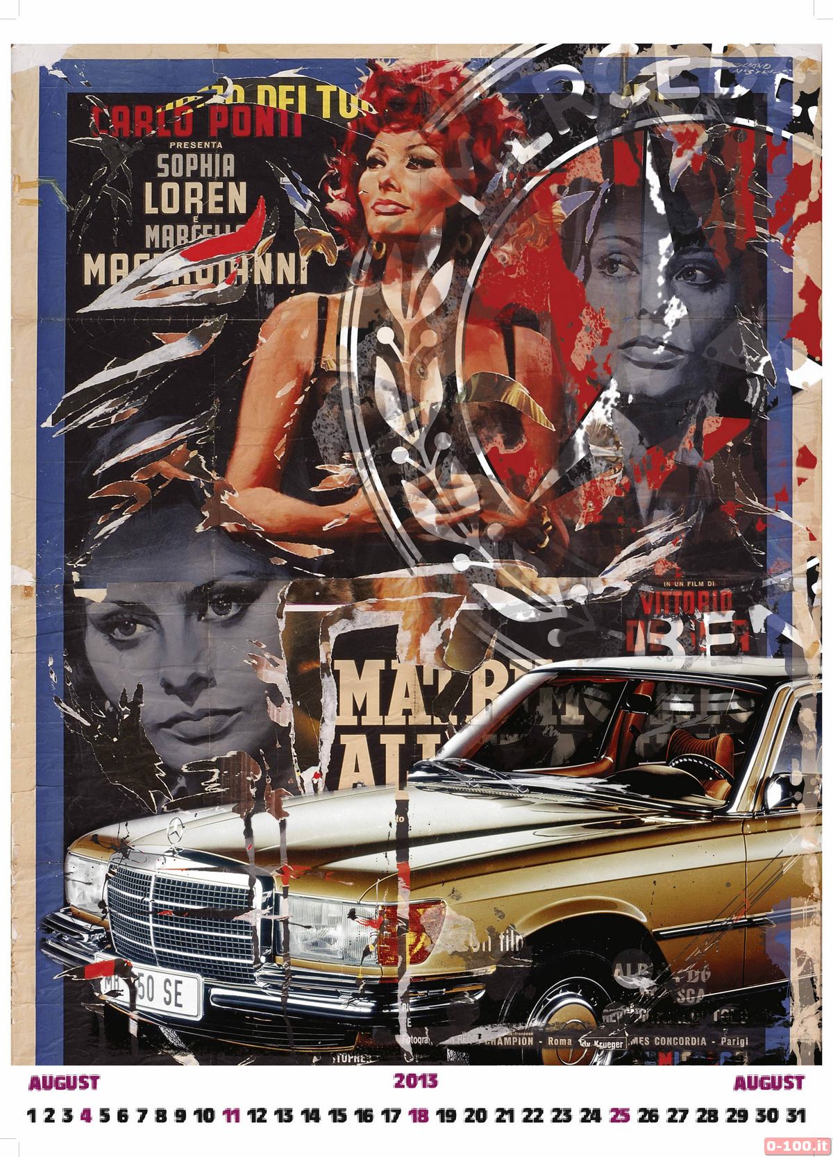 ll fotografo croato Monty Shadow ha fuso insieme i décollage tipici di Rotella (cartelloni cinematografici con famose star del cinema tratti dalla serie “Cinecittà”, strappati, dipinti, incollati e tagliati) e foto di berline Mercedes-Benz del segmento superiore dal 1904 in poi.