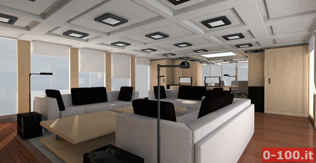 E spinto da due motori MTU Turbodiesel da 5.300 cavalli ciascuno, che lo spingono fino a una velocità di 28 nodi pur consapevoli che verrà certo utilizzato per la più comoda velocità di crociera.