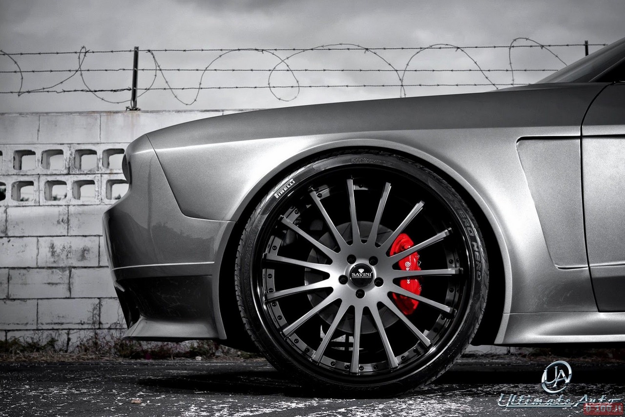 Il kit per la Charger SRT-8 equipaggiata con il V8 Hemi da 392 pollici cubici, si compone di nuovi scudi paraurti (anteriormente con nuovo radiatore, nuovi fari e nuove prese d’aria), parafanghi smisuratamente allargati, minigonne, cofano posteriore con spoiler. Ma, soprattutto, ruote Savini da 24″ che montano giganteschi pneumatici Pirelli, i posteriori nella spaventosa misura di 405/25.