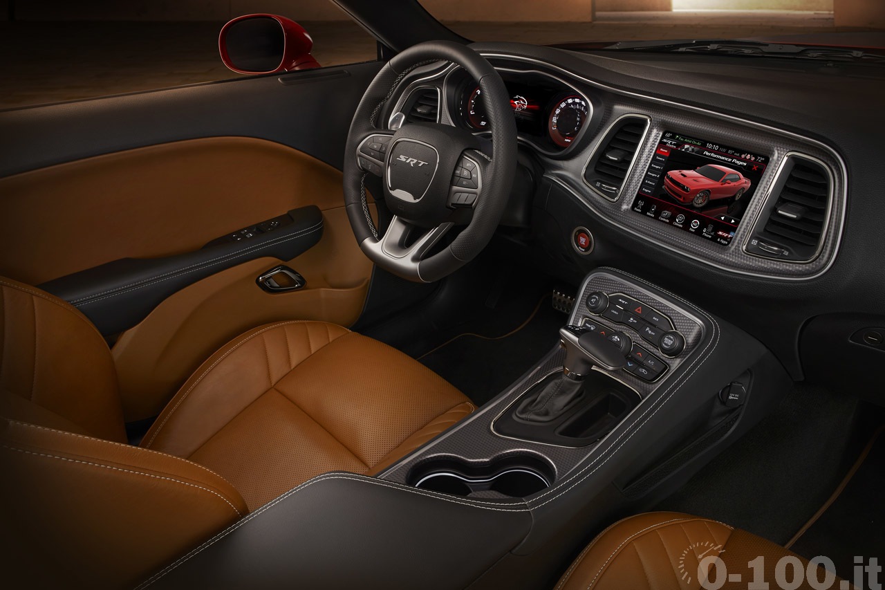 Come se non bastasse, nell’intera storia del Chrysler Group la Dodge Challenger SRT Hellcat è dotata di un portachiavi speciale dotato di due pulsanti: quello nero, agisce via “wireless” direttamente con la centralina e mantiene la potenza massima erogata a 500 cavalli.