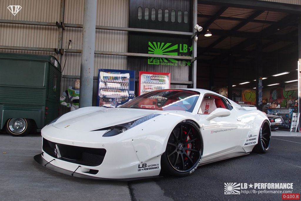 Il customizzatore giapponese Liberty Walk ha presentato al recente SEMA 2013 di Las Vegas il suo kit a “carrozzeria allargata” per la Ferrari 458 Italia.