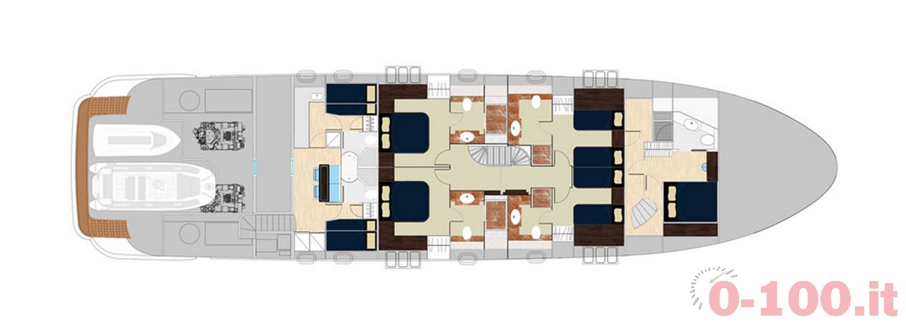Sul ponte principale, più precisamente nell’area prodiera, trovano posto la suite armatoriale, un salone open space con zona pranzo e un’area relax.