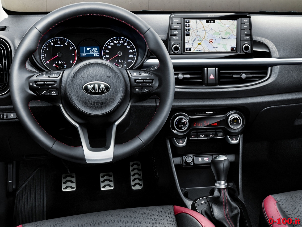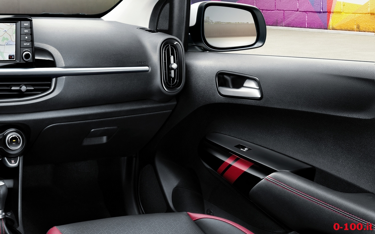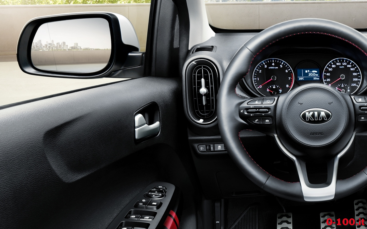 La Picanto sarà particolarmente curata negli interni per offrire un prodotto degno del corso di KIA, orientato alla qualità: nelle immagini si può notare la presenza di alcuni accessori come i 4 vetri elettrici, specchi elettrici e ripiegabili, chiusura centralizzata, connettività con presa Aux/USB, schermo touchscreen “floating”, volante multifunzione, cruise control, riscaldamento sedili, volante multifunzione, computer di bordo.