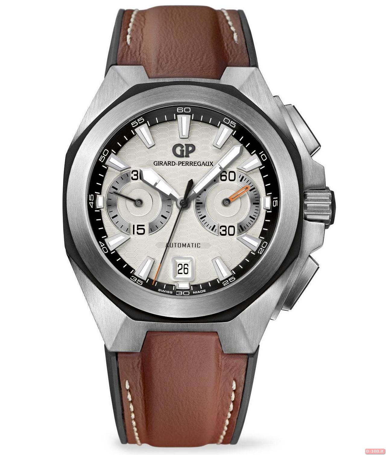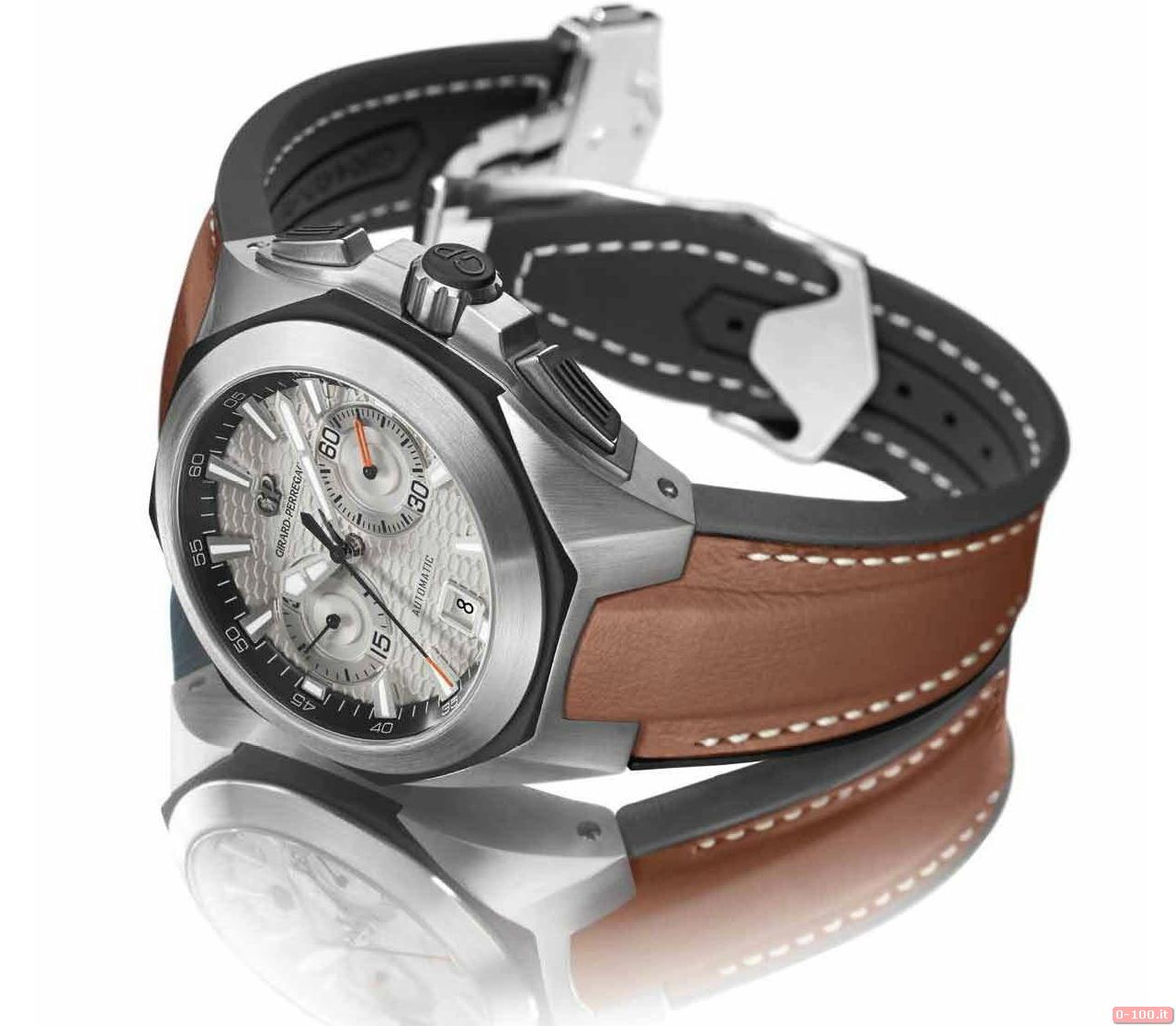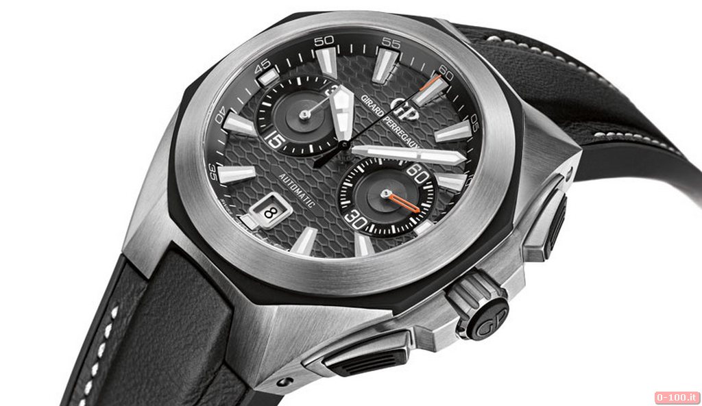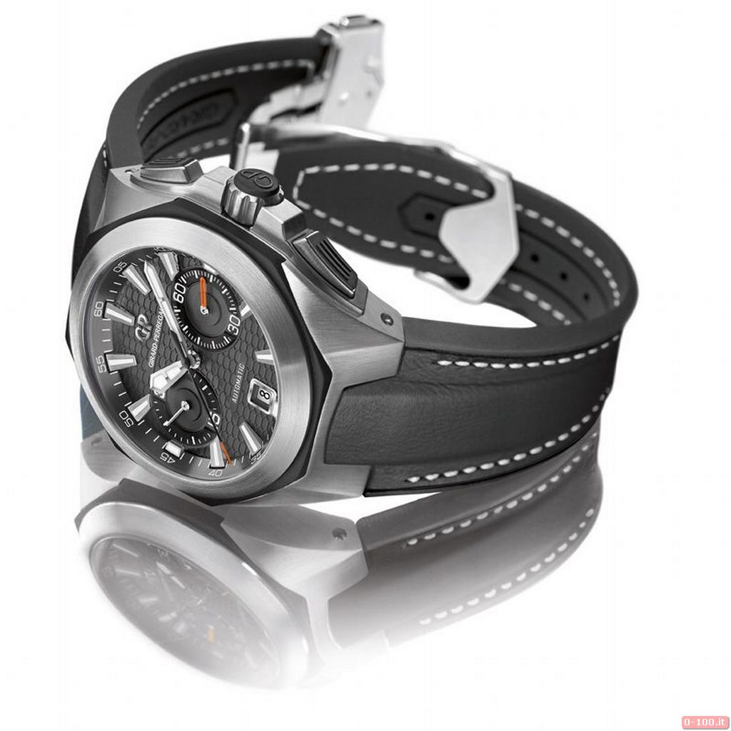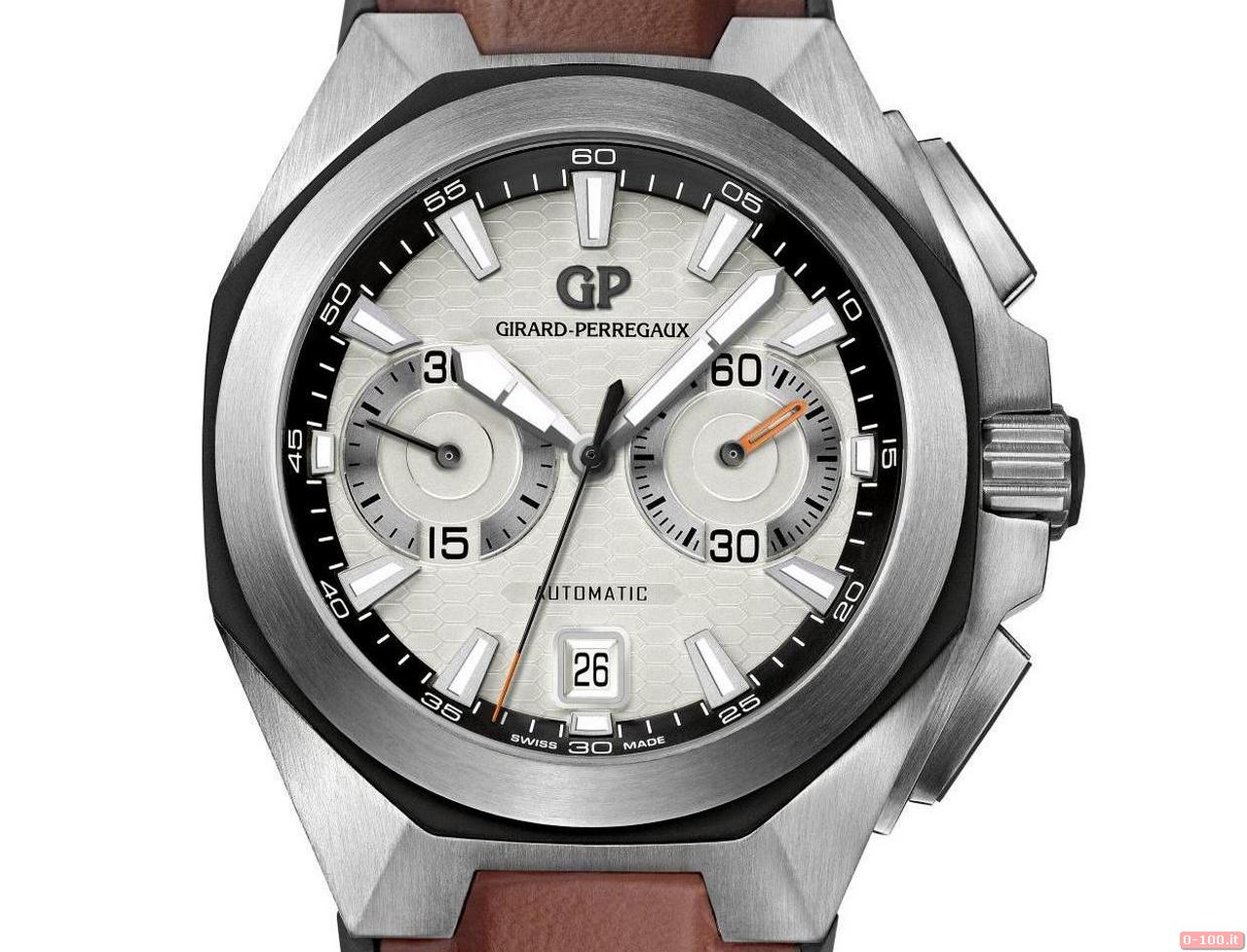 Il Girard-Perregaux Chrono Hawk, protetto da vetro zaffiro anti-riflesso, è impermeabile fino a -100 metri.