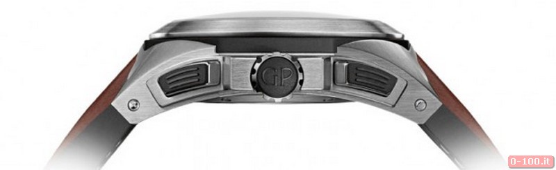Sul fondello, grazie a un vetro in cristallo di zaffiro, è possibile ammirarne il movimento meccanico calibro GP3300.