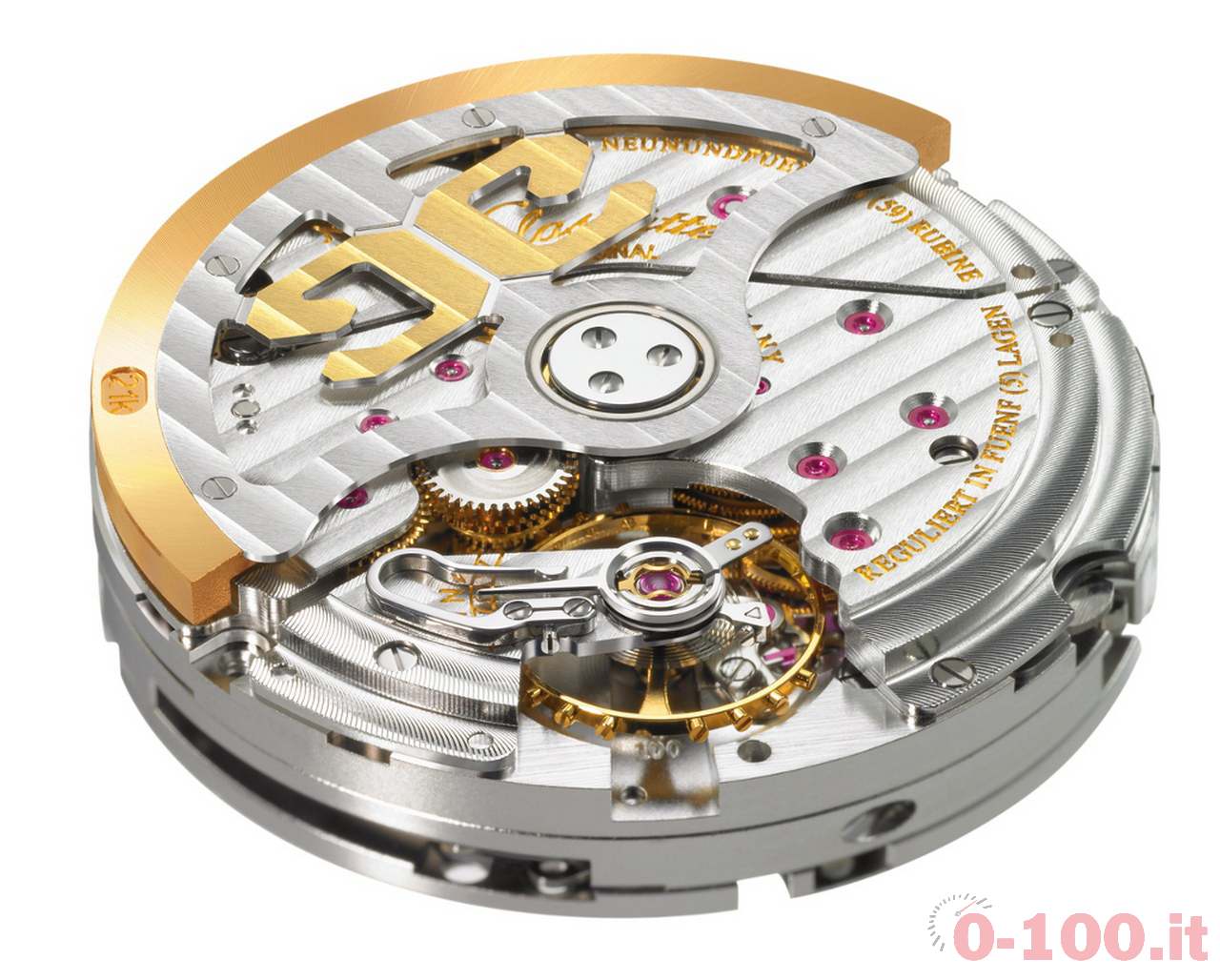 Questo meccanismo meccanico a carica automatica, che presenta una platina a 3/4 e una massa oscillante con microrotore decentrato con il logo a “doppia G”, è custodito in una cassa in oro rosso o bianco 18kt di 44 mm di diametro.