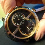La cassa dal profilo sinuoso e senza lunetta, che contraddistingue il brand al pari dei quadranti in smalto Grand Feu e di quelli in pietra, cristallo e minerale che vestono i display al pari di un abito prezioso e unico, è sovrastata da una protezione in vetro zaffiro che s’ispira agli orologi da tasca del XVIII secolo. Proposta in acciaio, oro, ceramica, titanio o fibra di carbonio, ogni cassa necessita di un minimo di 80 passaggi.