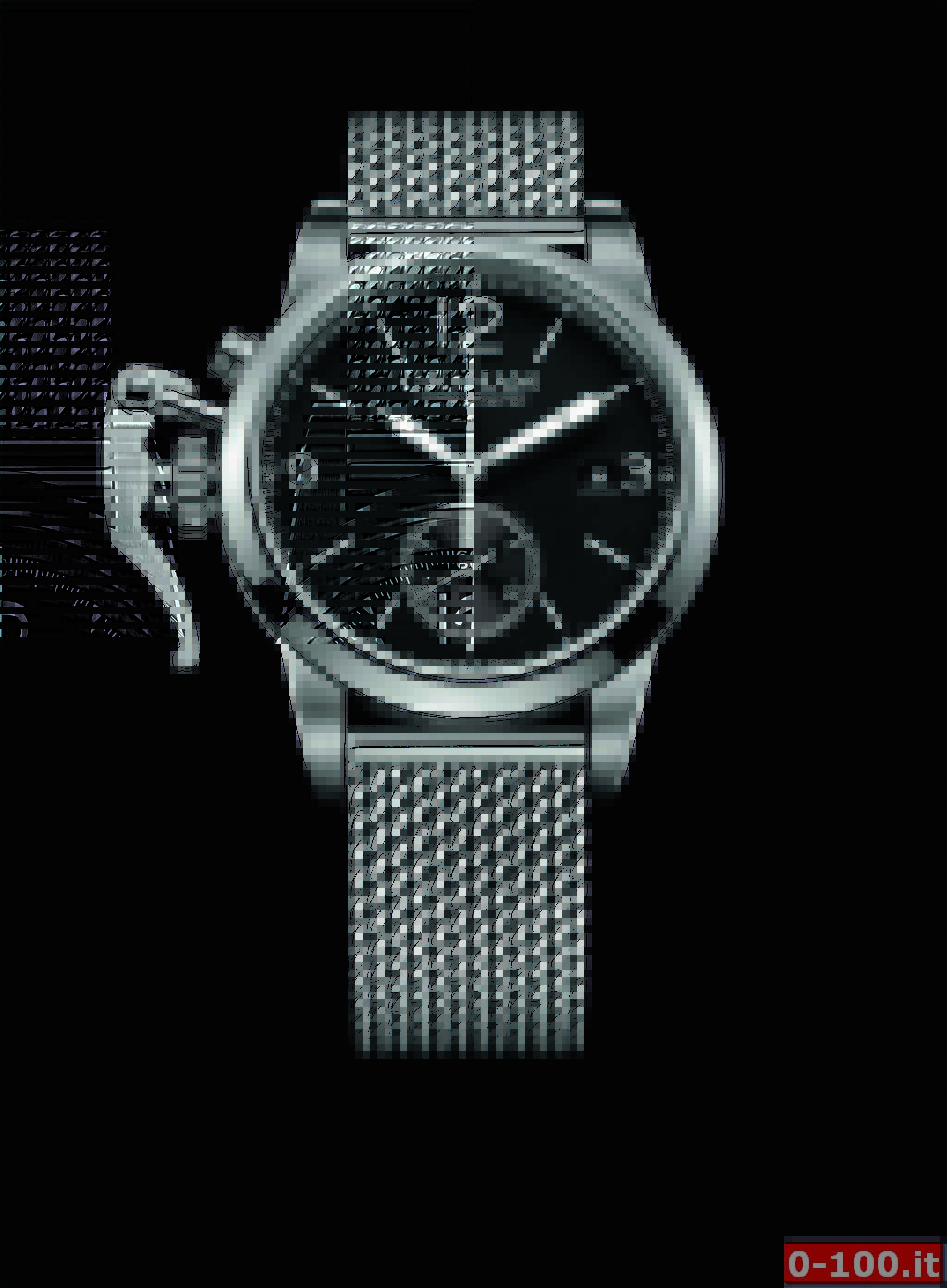 Segno distintivo ed essenziale del Chronofighter resta la leva posta sul fianco sinistro della cassa utile all’azionamento del cronografo tramite un pulsante coassiale alla corona, mentre il pulsante posto alle ore 10 serve all’azzeramento della misurazione cronografica stessa.