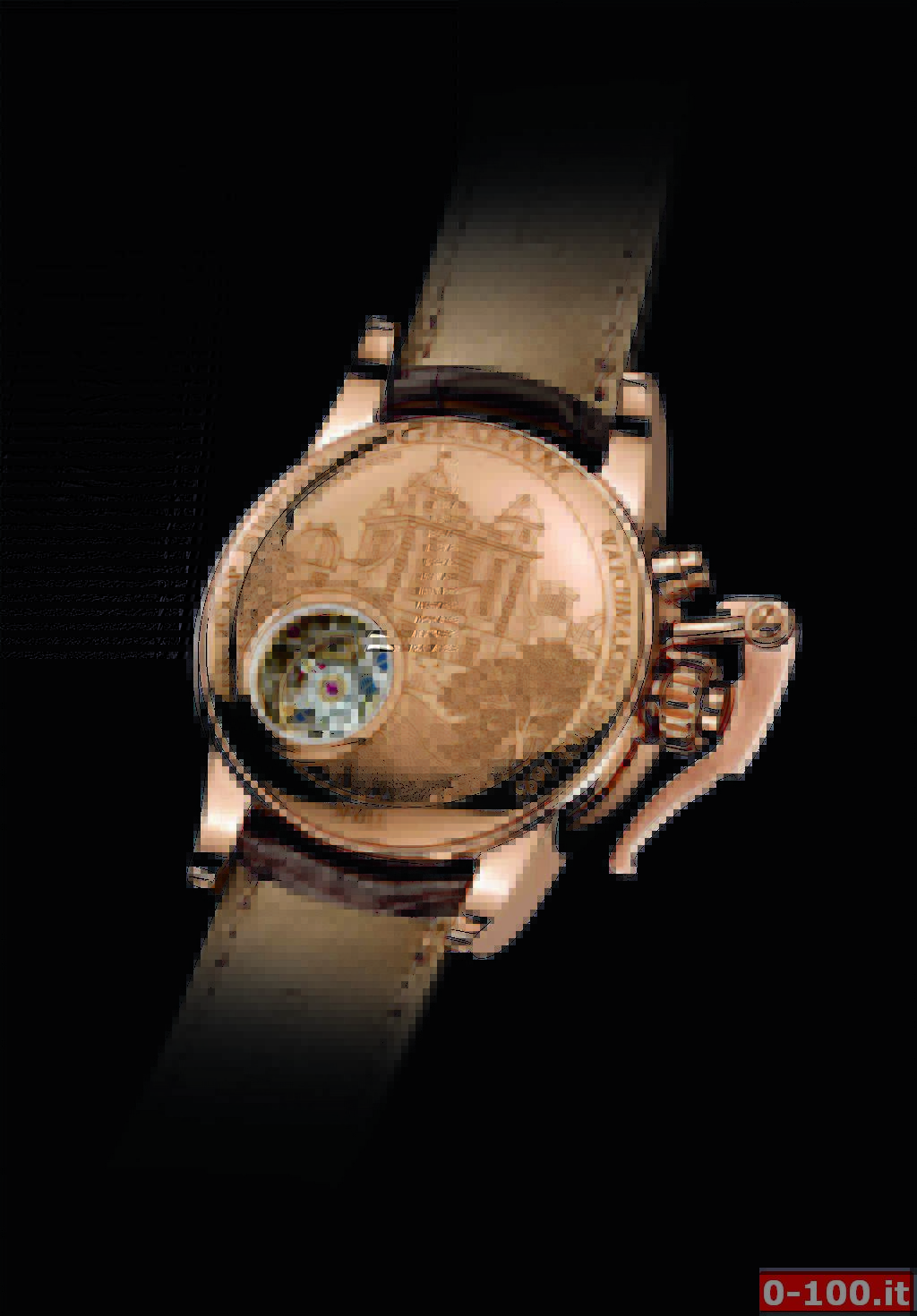 Questo modello si declina in due versioni: cassa in acciaio inox (quadrante nero e numeri bianchi o argento/bianco con numeri e indici neri) con cinturino in pelle nera o marrone e cassa in oro rosa 18 carati (quadrante color champagne con numeri applicati in oro a ore 12, 3 e 9 e indici applicati in oro a bastone le altre ore) con cinturino in pelle di coccodrillo marrone.