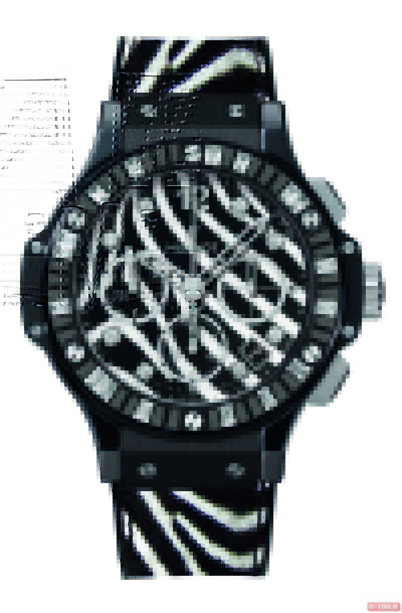 Il Big Bang Zebra di Hublot, prossimo protagonista al SIHH 2013 di Ginevra, ha una cassa con un diametro di 41 mm, disponibile in 3 versioni: ceramica nera, ceramica bianca o oro rosso 18 carati e acciaio.