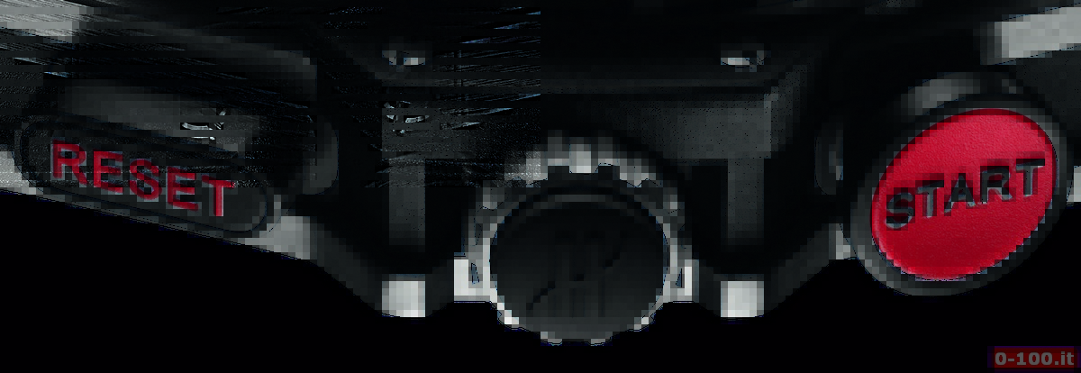 Il pulsante START a ore 2 ha un inserto in caucciù rosso e testo nero mentre quello di RESET ha inserto in caucciù nero e testo rosso.