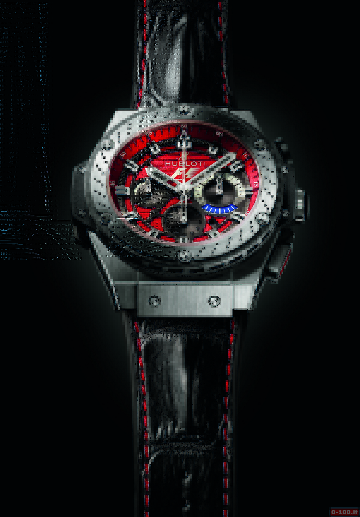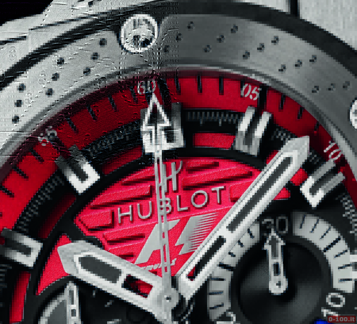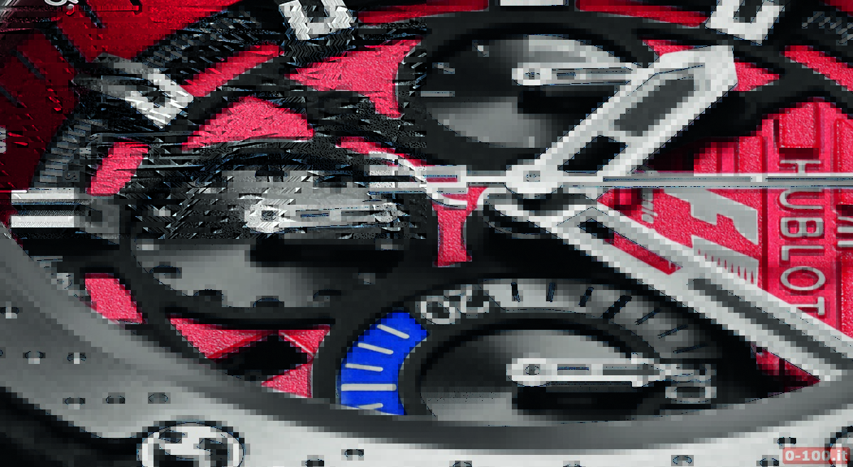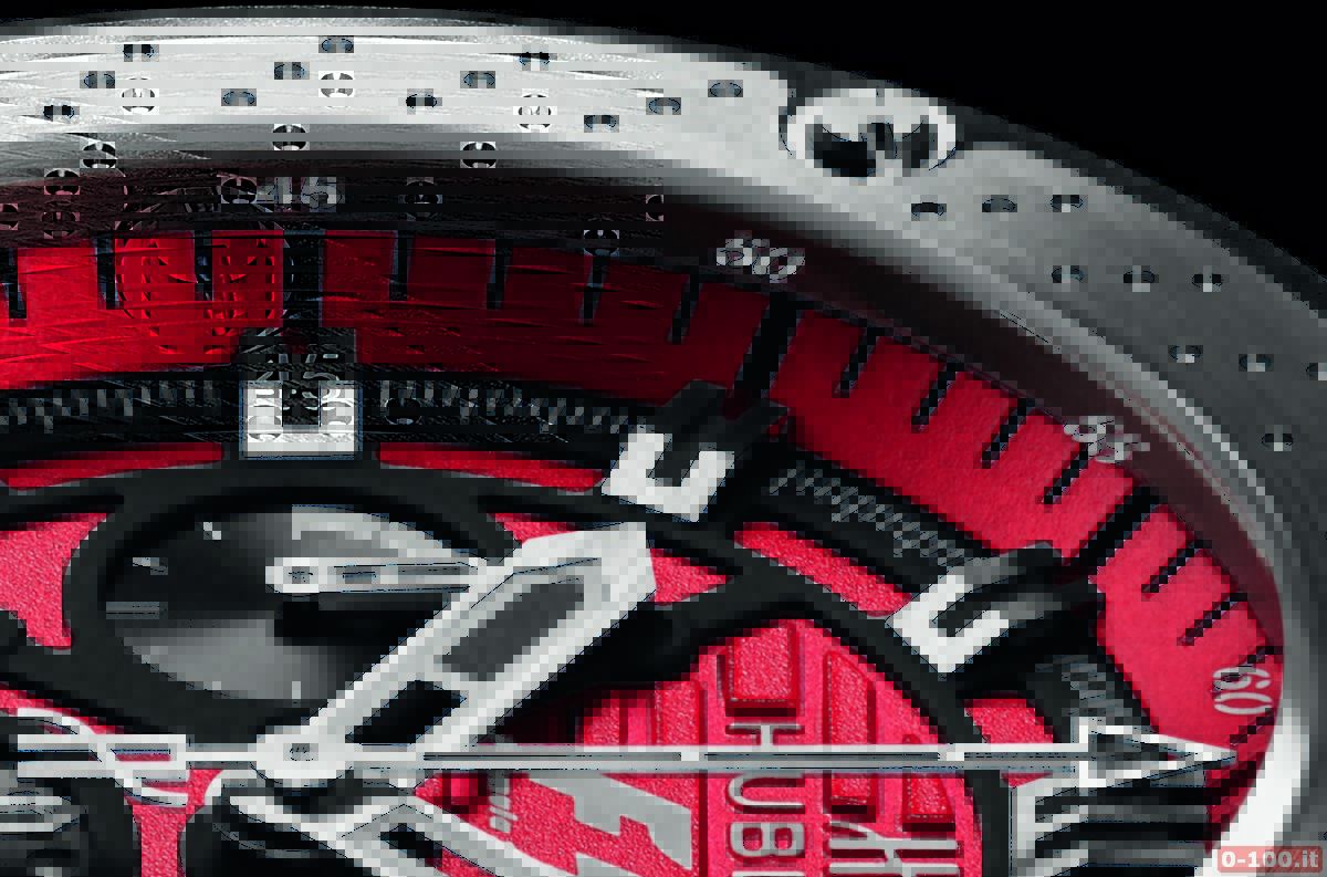 L’ HUBLOT F1™ King Power Austin è equipaggiato con il calibro HUB4100 di manifattura, meccanico a carica automatica, 27 rubini, 234 componenti, ponti radiati lucidi e satinati, riserva di carica di 42 ore.