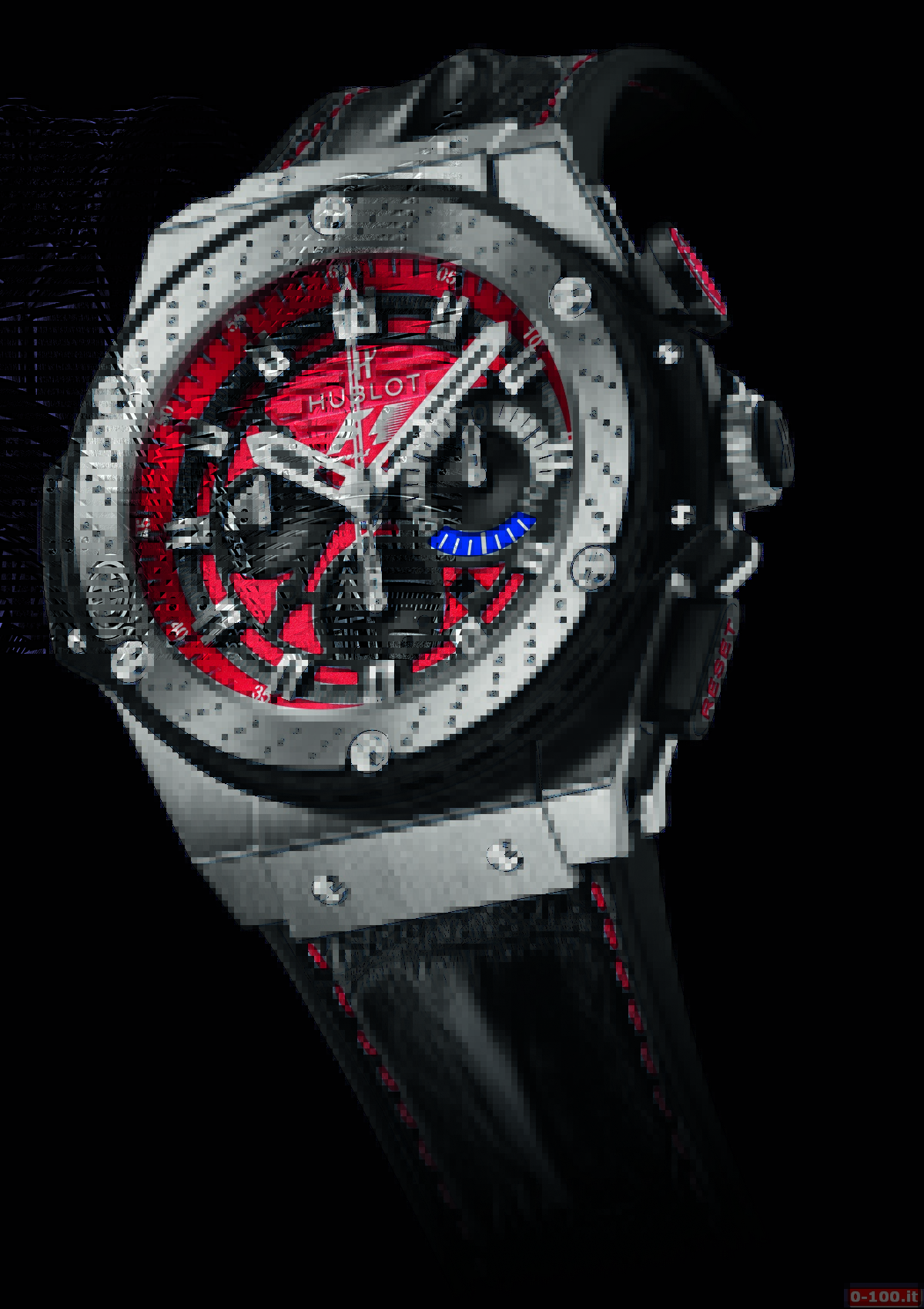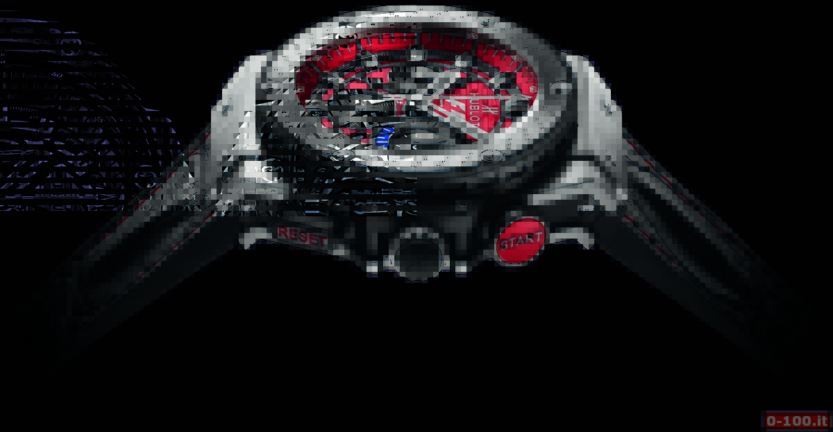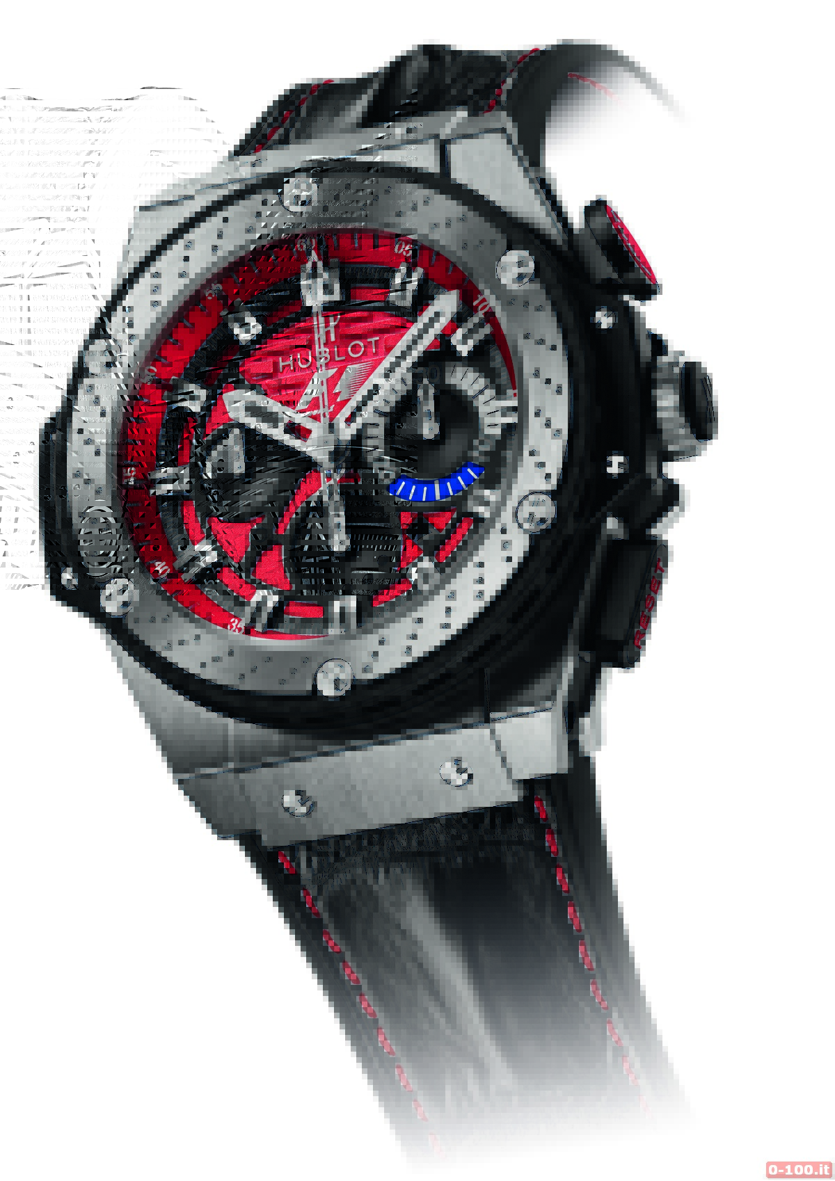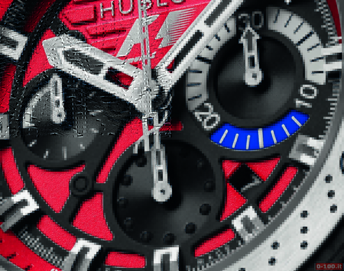 L’ HUBLOT F1™ King Power Austin è equipaggiato con il calibro HUB4100 di manifattura, meccanico a carica automatica, 27 rubini, 234 componenti, ponti radiati lucidi e satinati, riserva di carica di 42 ore.