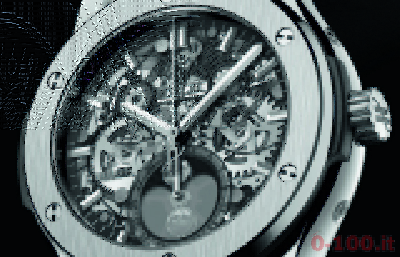 L’Hublot Calssic Fusion Aeromoon monta il calibro HUB1131, movimento meccanico a carica automatica con fasi lunari (ore 6) e un’autonomia di marcia di circa 42 ore.
