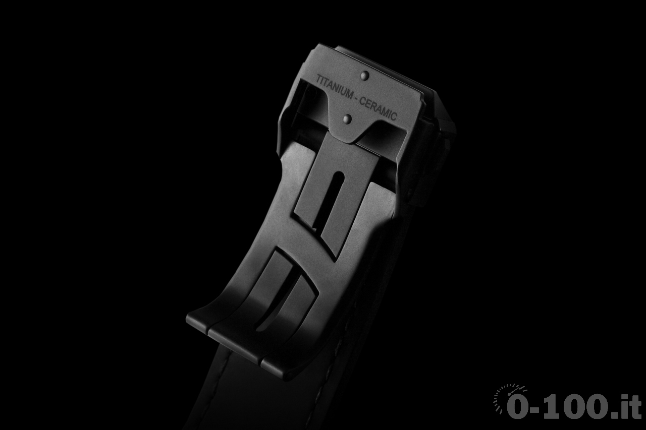 L’orologio vede l’impiego anche di titanio e ceramica mentre il cinturino è proposto in pregiata pelle di coccodrillo o con un più sportivo bracciale in gomma naturale.