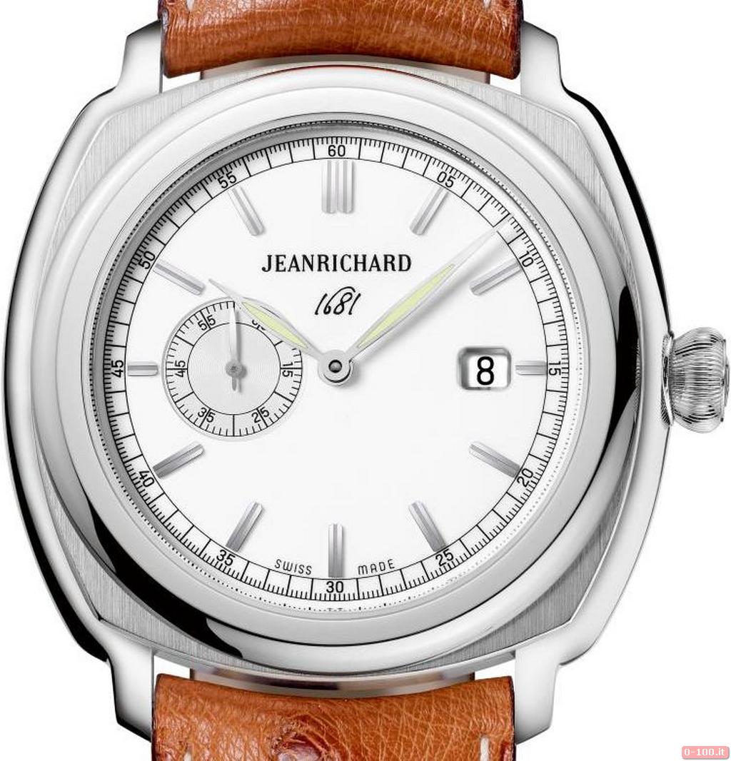 Il nuovo 1681 Cambre della Maison svizzera JeanRichard (1681 è l’anno in cui Daniel Jeanrichard produsse il suo primo orologio) è equipaggiato con il calibro di manifattura JR1000 (diametro di 11 1/2” e 3,77 mm di spessore), meccanico a carica automatica (32 rubini, 28.800 alternanze l’ora e 48 ore di riserva di carica).