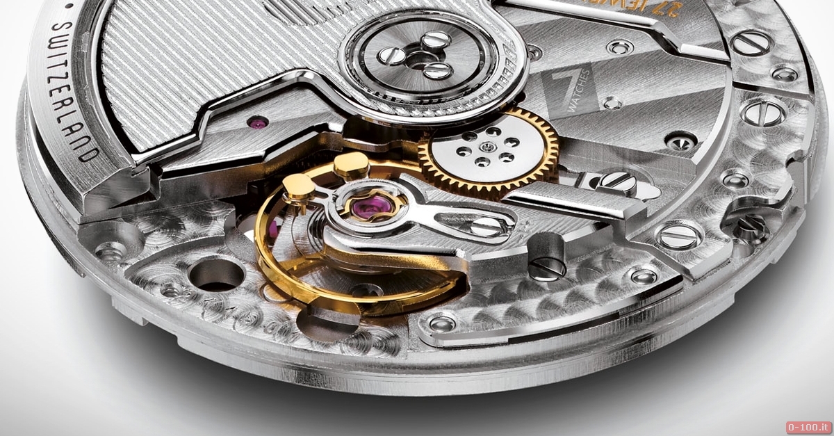 Sul quadrante, il contatore crono dei secondi continui si trova a ore 9 mentre il datario è a ore 3.