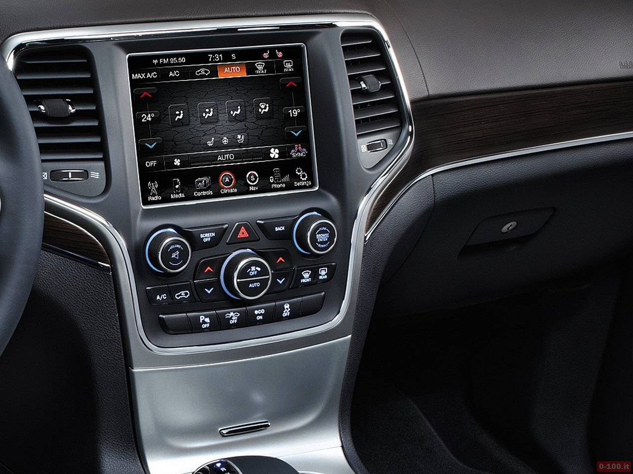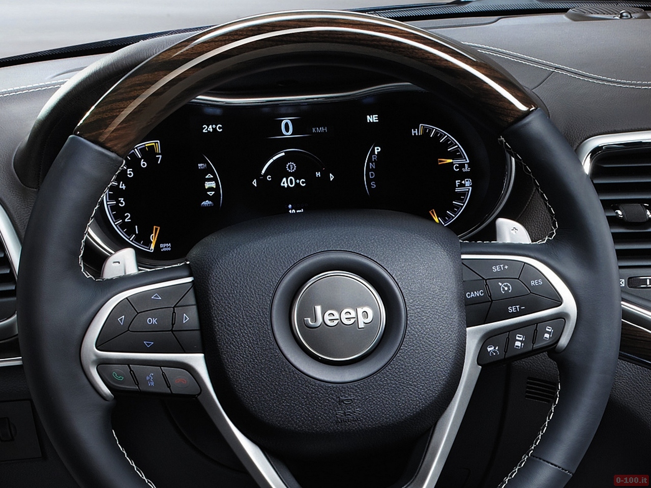 Gli interni si caratterizzano per l’utilizzo di nuovi materiali (tra cui pelle e legno per gli inserti) di qualità ancora più elevata rispetto al modello precedente. Tra le nuove particolarità spiccano lo schermo touchscreen del sistema UConnect da 8,4″, nuova leva del cambio, nuovo volante a tre razze con paddle (nelle versioni Overland e Summit, propone anche pregiati inserti in legno), nuova strumentazione digitale configurabile dal pilota.