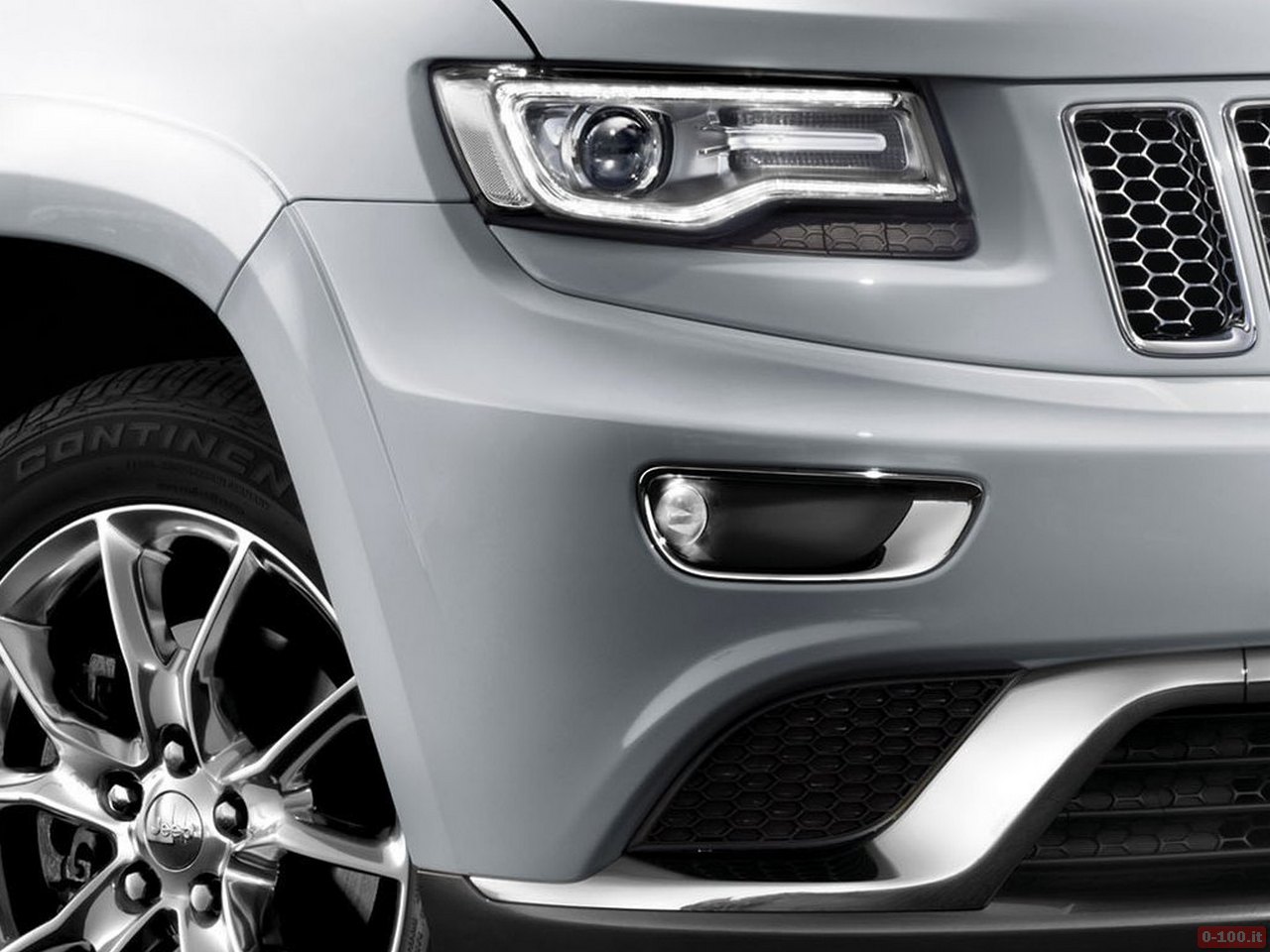 Il nuovo Grand Cherokee esibisce la classica mascherina con griglia a 7 feritoie. Ma anche fari più piccoli (bi-Xenon con luci a led su tutte le versioni), fascione paraurti più alto, fendinebbia più alti.